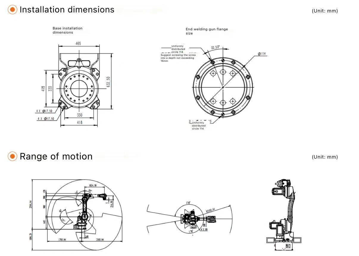 Mainly used for arc welding, laser welding, material handling, loading/unloading, sorting, and spraying tasks.