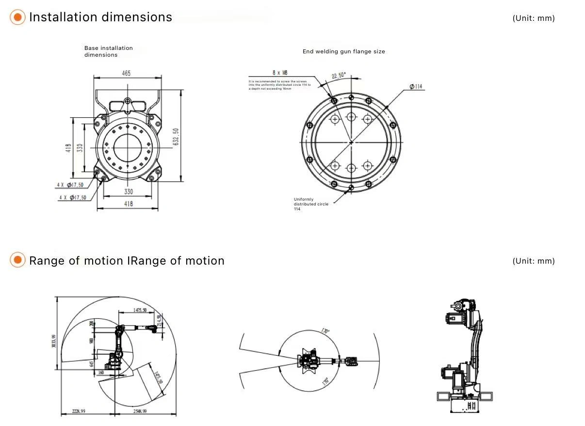 Mainly used for arc welding, laser welding, material handling, loading/unloading, sorting, and spraying tasks.